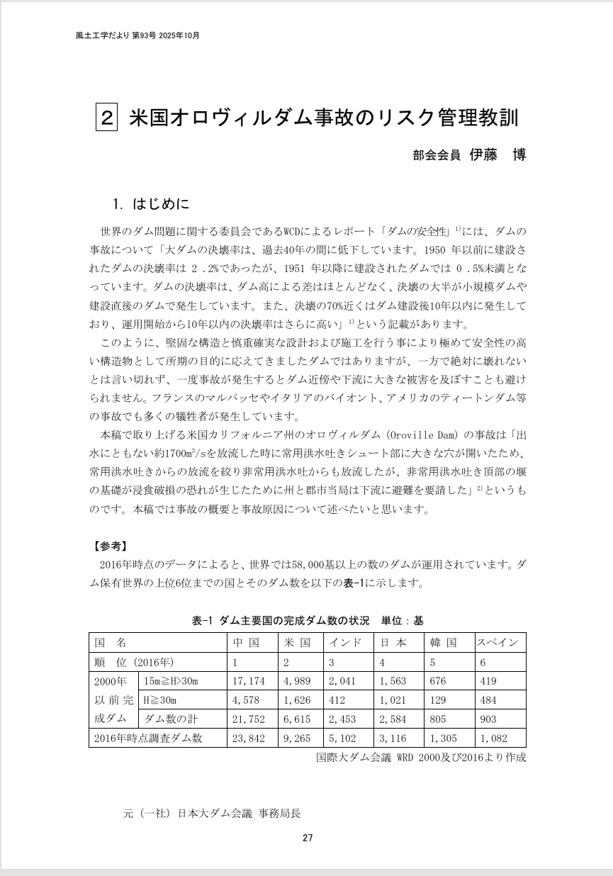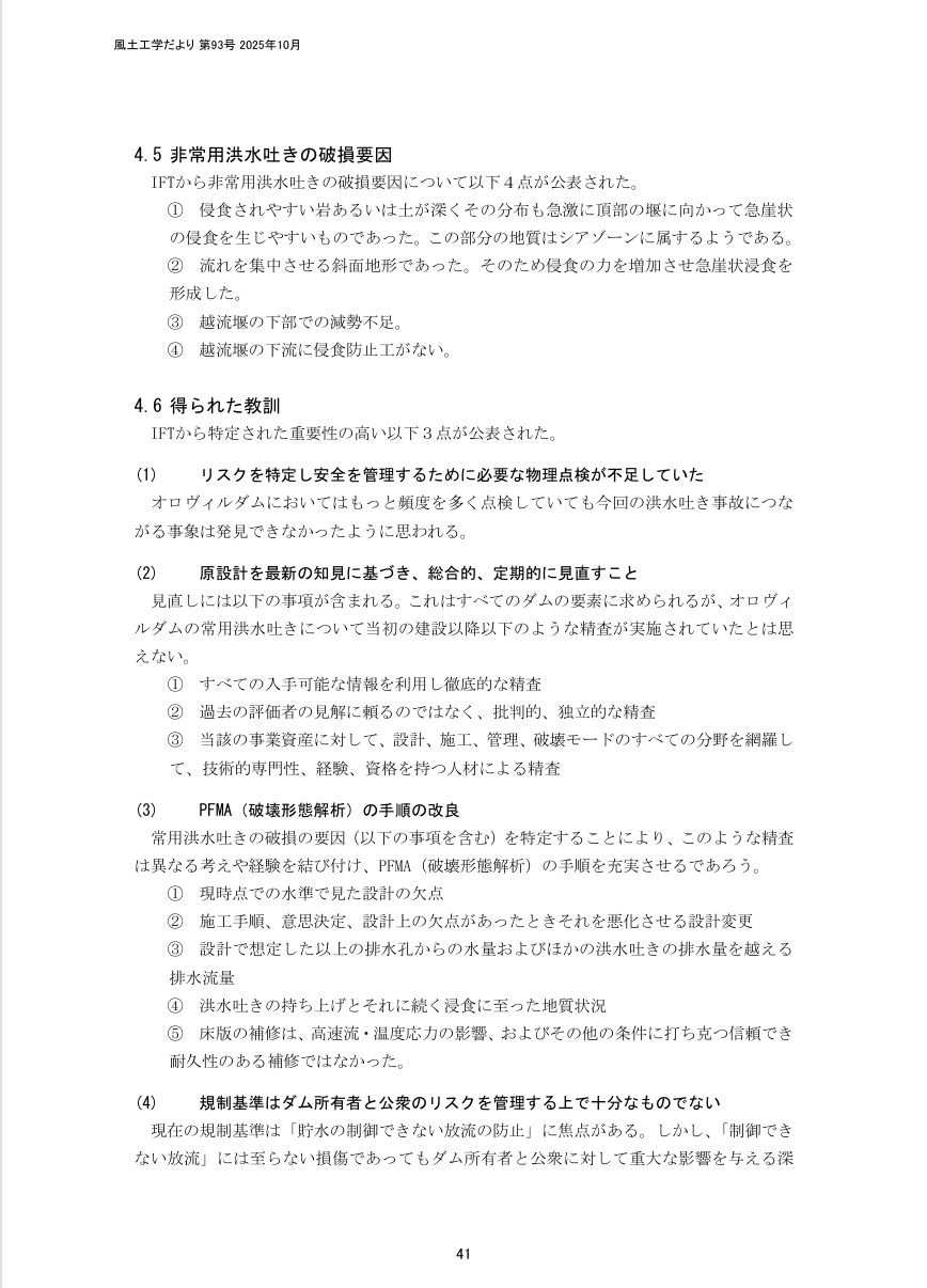 今回、ダム設計を専門としてきた私の友人から、その事故よりの「教訓」をテーマとした報告論文の提供をいただきました。